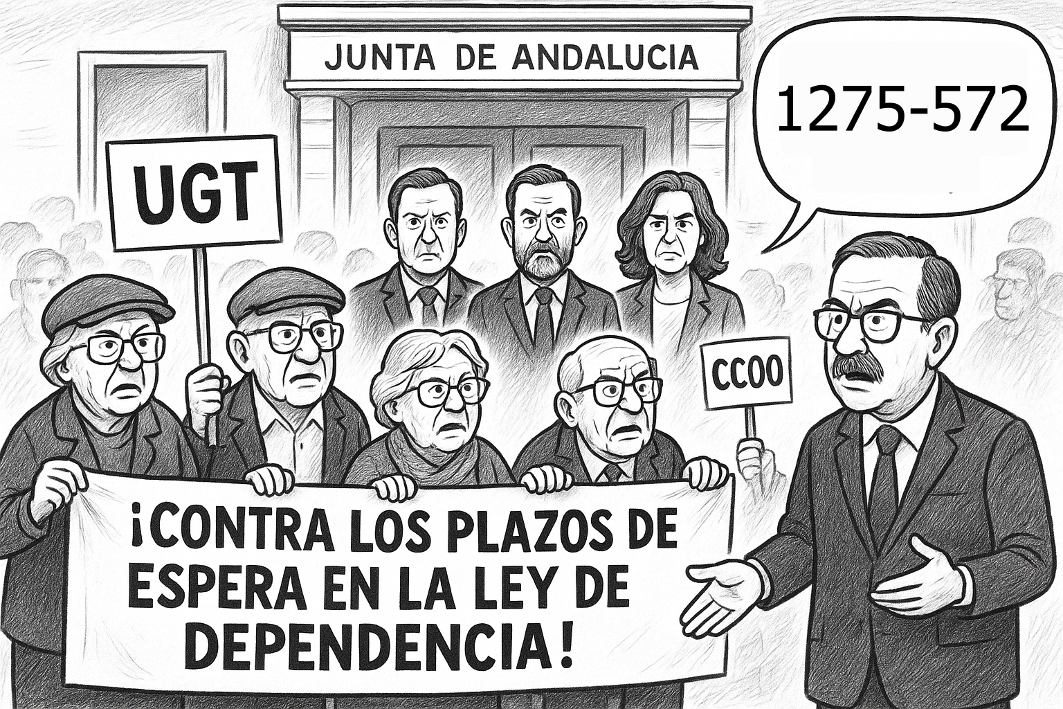 Este pasado 1 de octubre, con motivo del Día Internacional de las Personas Mayores, la sede del Gobierno andaluz en nuestra provincia se convirtió, una vez más, en el escenario de una protesta. Las pancartas, enarboladas por los sindicatos Comisiones Obreras y UGT, y arropadas por una notable presencia de dirigentes del PSOE almeriense, clamaban contra los plazos de espera en la aplicación de la Ley de Dependencia. Una causa justa, sin duda. ¿Quién puede negar que esperar para recibir una prestación a la que se tiene derecho es una agonía?