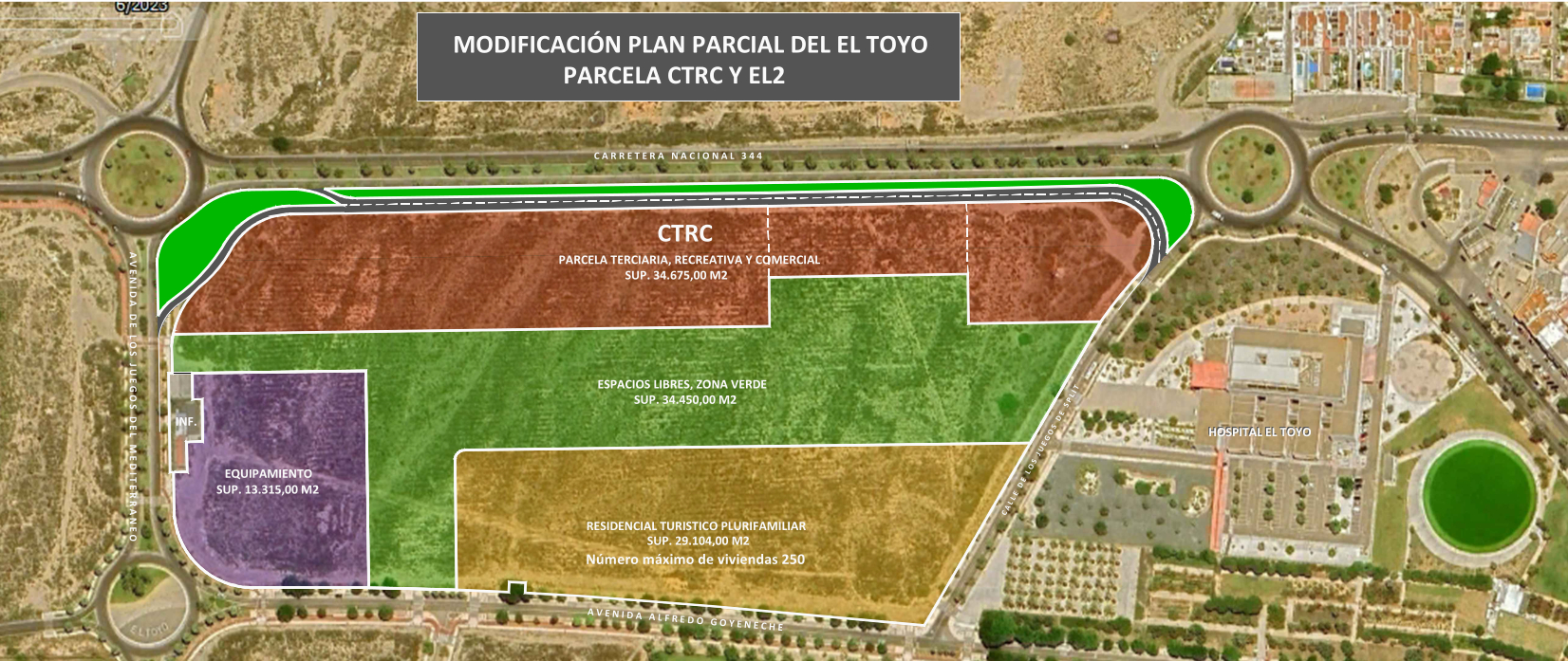 La Junta de Gobierno Local del Ayuntamiento de Almería ha aprobado someter a información pública el proyecto de reparcelación correspondiente al Estudio de Ordenación promovido por la mercantil ‘Joisan Toyo, S.L.’, que afecta a las parcelas CTRC y EL-2 del Plan Parcial El Toyo, en Almería. El documento fue presentado por sus promotores el pasado mes de diciembre y cuenta con informe favorable para su aprobación inicial conforme a la legislación vigente.