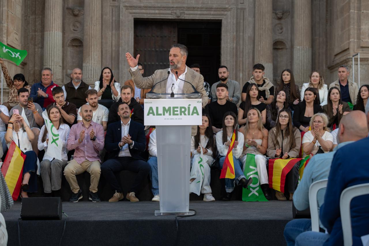 La Plaza de la Catedral de Almería ha sido el escenario de un acto de precampaña para las elecciones andaluzas del 17 de mayo, donde el presidente de VOX, Santiago Abascal, ha centrado su discurso en la situación política actual. Durante su intervención, el dirigente ha sido tajante al afirmar que "el principal problema de España se llama Pedro Sánchez", acusando al líder del PSOE de actuar de forma contraria a los intereses de la ciudadanía. Abascal ha respondido a las alusiones del presidente sobre los pactos de gobierno en otros territorios calificándolas de hipocresía, señalando que "vergüenza es ser el capo de una mafia corrupta, traidora y mentirosa a los españoles". En este sentido, ha reprochado al jefe del Ejecutivo central sus acuerdos con el entorno de ETA y la aprobación de la ley de amnistía, instándole a que "salga a la calle, mire a la gente a los ojos" y proceda a la convocatoria de elecciones de manera inmediata.