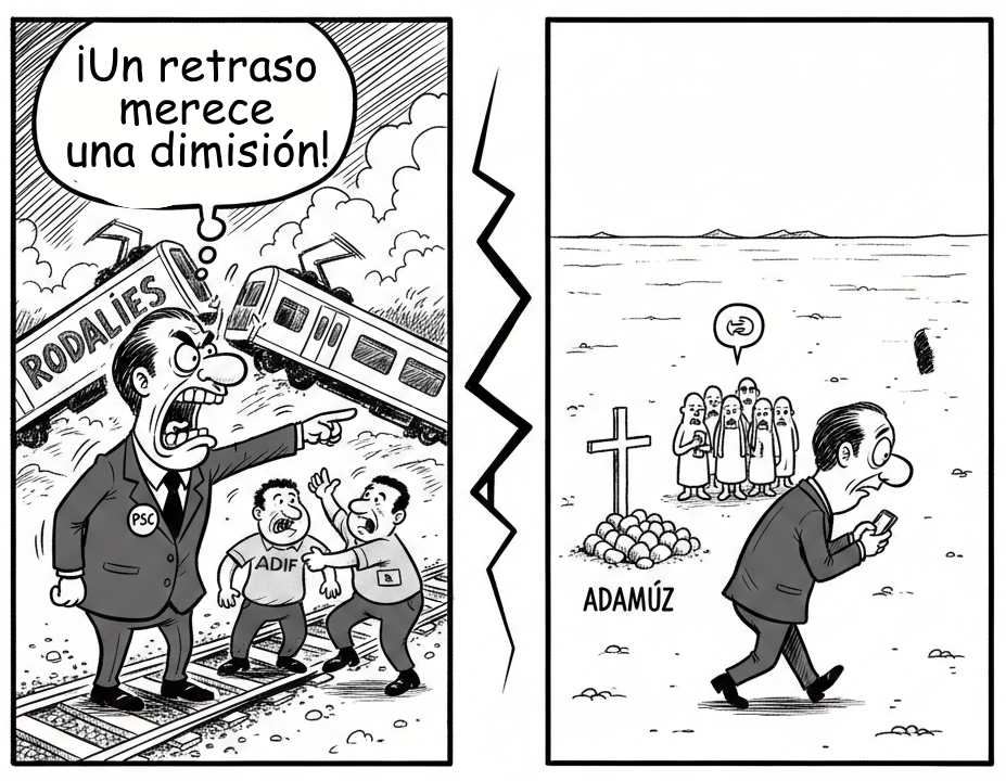 Hay que reconocerle al nacionalismo catalán una coherencia estética envidiable: solo se despeinan cuando el espejo les devuelve una imagen que no les gusta. El resto del paisaje, especialmente si es el paisaje seco y "lejano" de una provincia como la nuestra, les importa lo que a un tren de Rodalies la puntualidad: absolutamente nada.Estos días hemos asistido a un espectáculo de funambulismo político que daría para una tesis sobre la asimetría moral. En Cataluña, un caos ferroviario trufado de retrasos, falta de inversión y el trágico accidente en Gelida —donde falleció un joven maquinista sevillano de 28 años en prácticas y hubo decenas de heridos— ha provocado un terremoto de despachos.