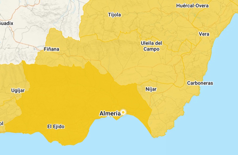 Alerta amarilla en Almería ante la previsión de lluvias y tormentas