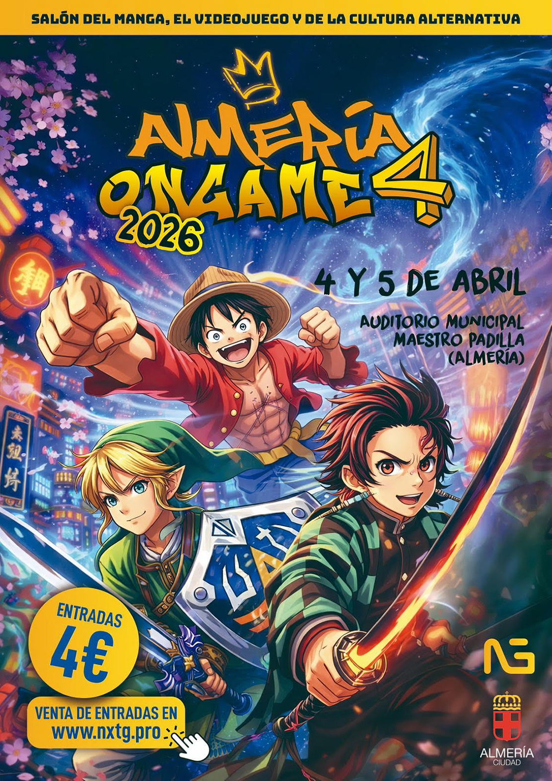 Después de tres ediciones celebradas en el marco de la programación especial de Navidad y, concretamente, en el Puente de la Constitución, el salón ‘Almería OnGame’ desarrollará su cuarta edición por primera vez en Semana Santa. Será este sábado y domingo, 4 y 5 de abril, en el Auditorio Municipal Maestro Padilla que volverá así a abrir sus puertas a la cultura alternativa relacionada con el mundo del manga, los videojuegos y el kpop, con numerosas actividades, muestras, concursos e iniciativas que llegarán a otro tipo de públicos. Una iniciativa que está organizada por NeXT Gen y que está incluida dentro de la programación trimestral de primavera puesta en marcha por el Área de Cultura, Educación y Tradiciones del Ayuntamiento de Almería.