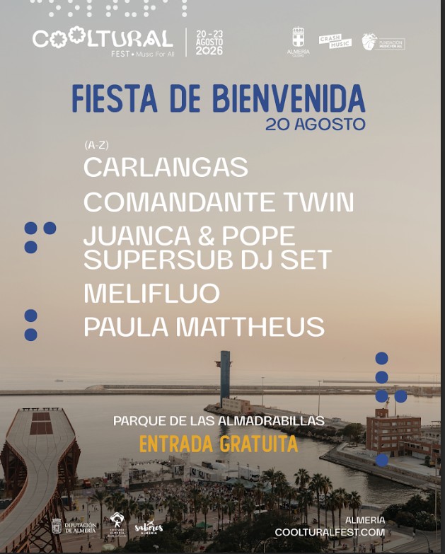 El constante movimiento es sello de identidad de Cooltural Fest desde su nacimiento… Pero también hay cosas que no es necesario cambiar y, desde luego, una de ellas es la tradicional Fiesta de Bienvenida con la que el festival que organiza Crash Music y el Área de Cultura y Tradiciones del Ayuntamiento de Almería recibe a la legión de ‘coolters’ en la tarde y noche del jueves, previa a los días grandes en el recinto de conciertos durante el primer fin de semana de Feria.