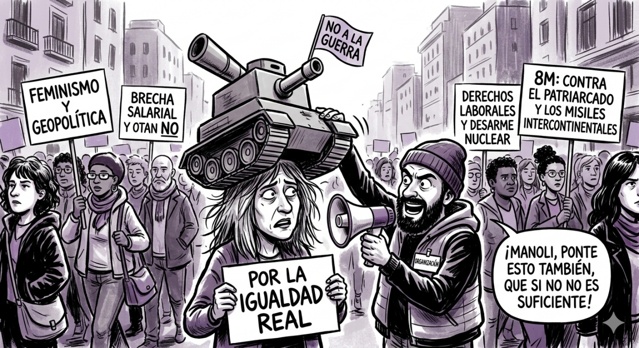 Resulta fascinante observar cómo ciertos sectores de la izquierda han decidido que el Día Internacional de la Mujer es tan poco relevante, que es el momento ideal para desempolvar el "No a la guerra". Porque claro, no hay nada que defina mejor la lucha por la igualdad que analizar el conflicto en Oriente Medio o la expansión de la OTAN mientras se pelea por la conciliación en el sector del manipulado, o se le da una patada al techo de cristal.