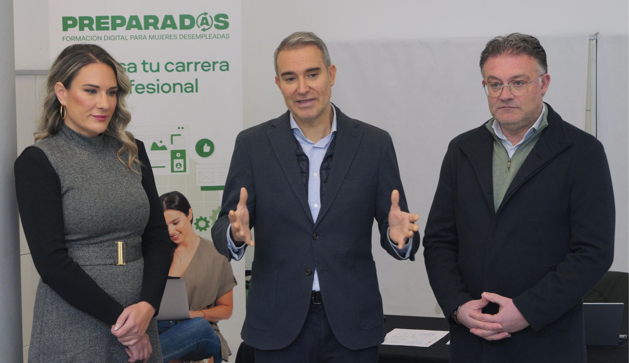 El delegado de Empleo y el primer edil virgitano han podido conocer de primera mano el desarrollo de una acción formativa titulada ‘Iníciate en el diseño gráfico y la creación de sitios web y desarrolla tu lado más creativo’, en el que participan 18 mujeres, y han dialogado con ellas y con el equipo docente sobre el impacto de la formación en la mejora de su empleabilidad y en proyectos de emprendimiento.