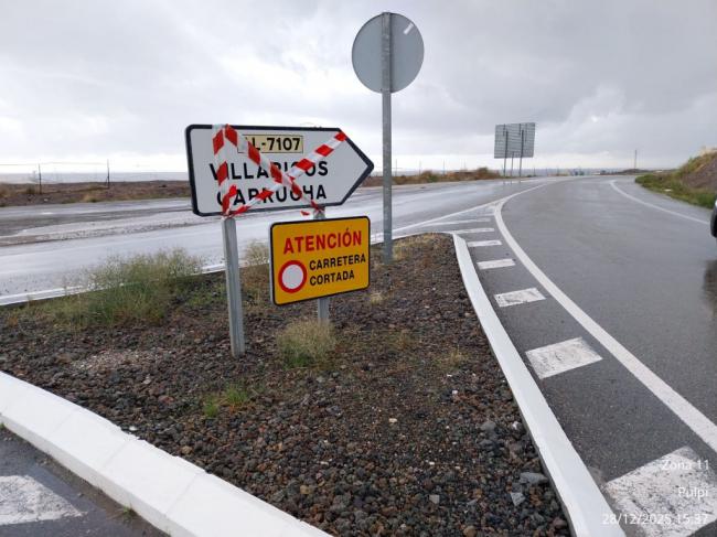 Además, la AL-8106, también en la ruta entre Cuevas del Almanzora y Villaricos, está cortada debido al cruce de una rambla, lo que impide el paso temporalmente por inundaciones o acumulaciones de agua y sedimentos.