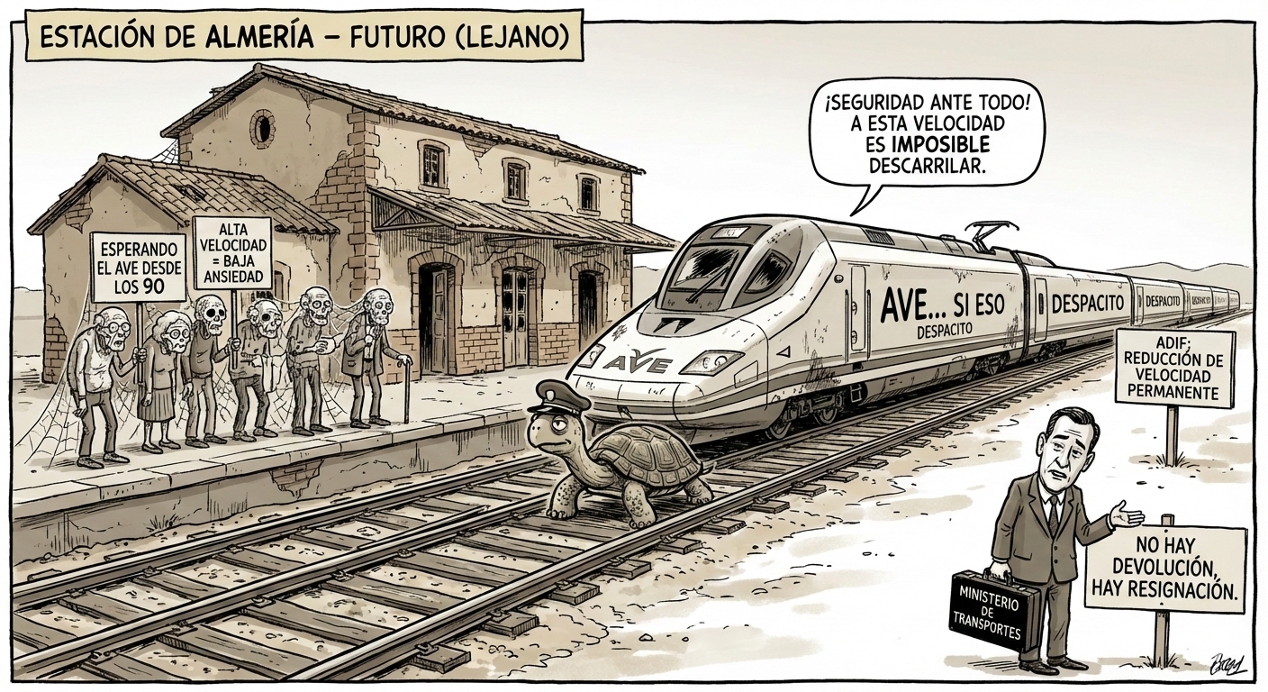 Lo más sangrante es la ironía del destino. Nos hemos pasado años reclamando la Alta Velocidad, soñando con ese AVE que nos conectaría con el resto del Estado y con Europa. Y ahora, justo cuando las obras parecen avanzar (a su ritmo geológico, claro), resulta que el concepto de AVE se está desmantelando en el resto de España. Es muy probable que, para cuando el AVE llegue a Almería, la "Alta Velocidad" ya no signifique ir rápido, sino simplemente ir. Nos van a vender como lujo un servicio que, en el resto del territorio, ya están rebajando a categoría de cercanías glorificado.