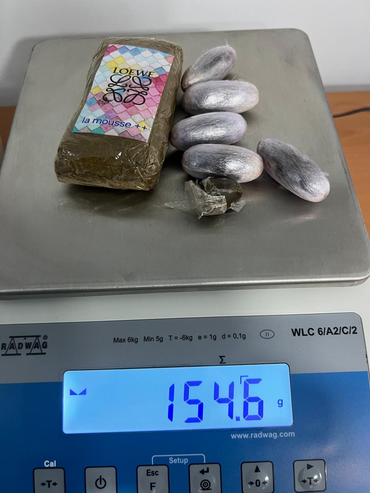 El detenido carecía de permiso de conducir vigente y tenía una orden de búsqueda, detención e ingreso en prisión por malos tratos en el ámbito familiar. Además, dio positivo en cocaína, cannabis y anfetaminas. Durante el registro al que se le sometió se le incautaron 105 euros en metálico y 154,6 gramos de hachís, mientras que la furgoneta portaba tableros de parqué empaquetados, sin que pudiera justificar su procedencia.