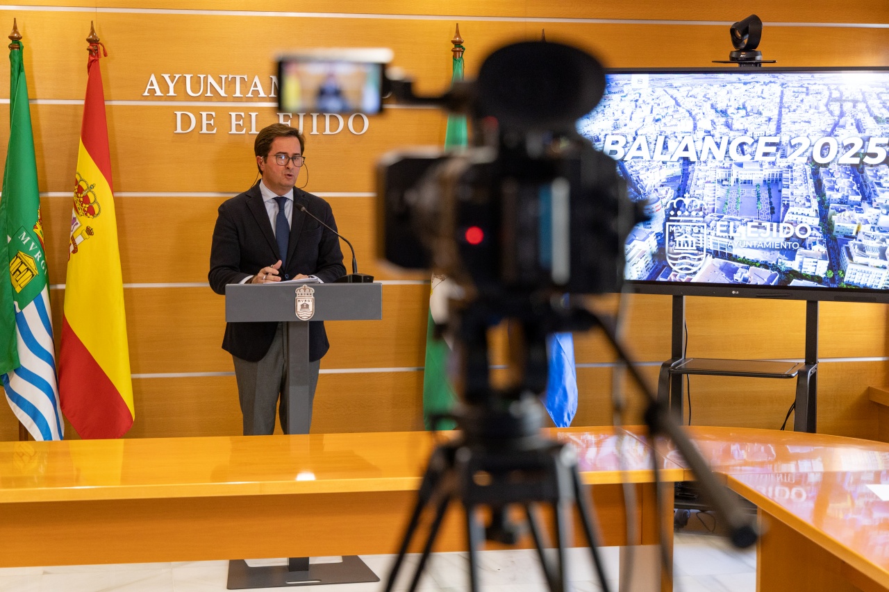 El alcalde de El Ejido, Francisco Góngora, ha ofrecido esta mañana un balance de este año 2025 que se va acercando a su final, en el que ha repasado las actuaciones más destacadas que se han llevado a cabo en cada una de las áreas municipales durante estos 12 meses, además de ofrecer un esbozo sobre un 2026 que llega con grandes proyectos para el municipio y con una economía cada vez más saneada para las arcas municipales.
