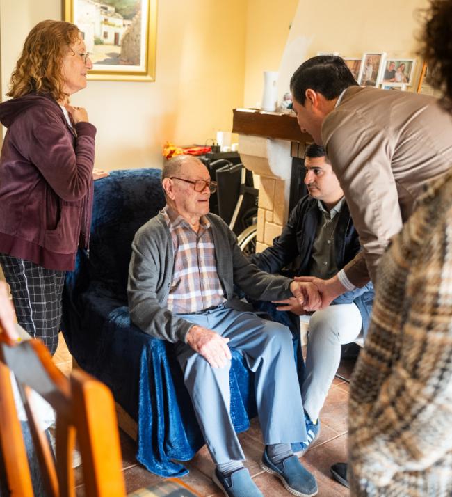 El alcalde de Níjar, José Francisco Garrido, acompañado por los concejales de Servicios, Jesús Guerrero, y de Municipio Activo y Tercera Edad, Rafael Nieto, ha visitado el núcleo urbano de Las Hortichuelas. Allí, ha recorrido calles y plazas de la localidad para tomar nota de las necesitades y demandas vecinales. Además, el alcalde y sus concejales ha compartido un rato de celebración con Bernabé, vecino del barrio que acaba de cumplir cien años, y a quien José Francisco Garrido ha felicitado “por una vida de esfuerzo, valores y raíces que han construido el Níjar que hoy conocemos, y cuya generación es ejemplo y memoria para nosotros”.