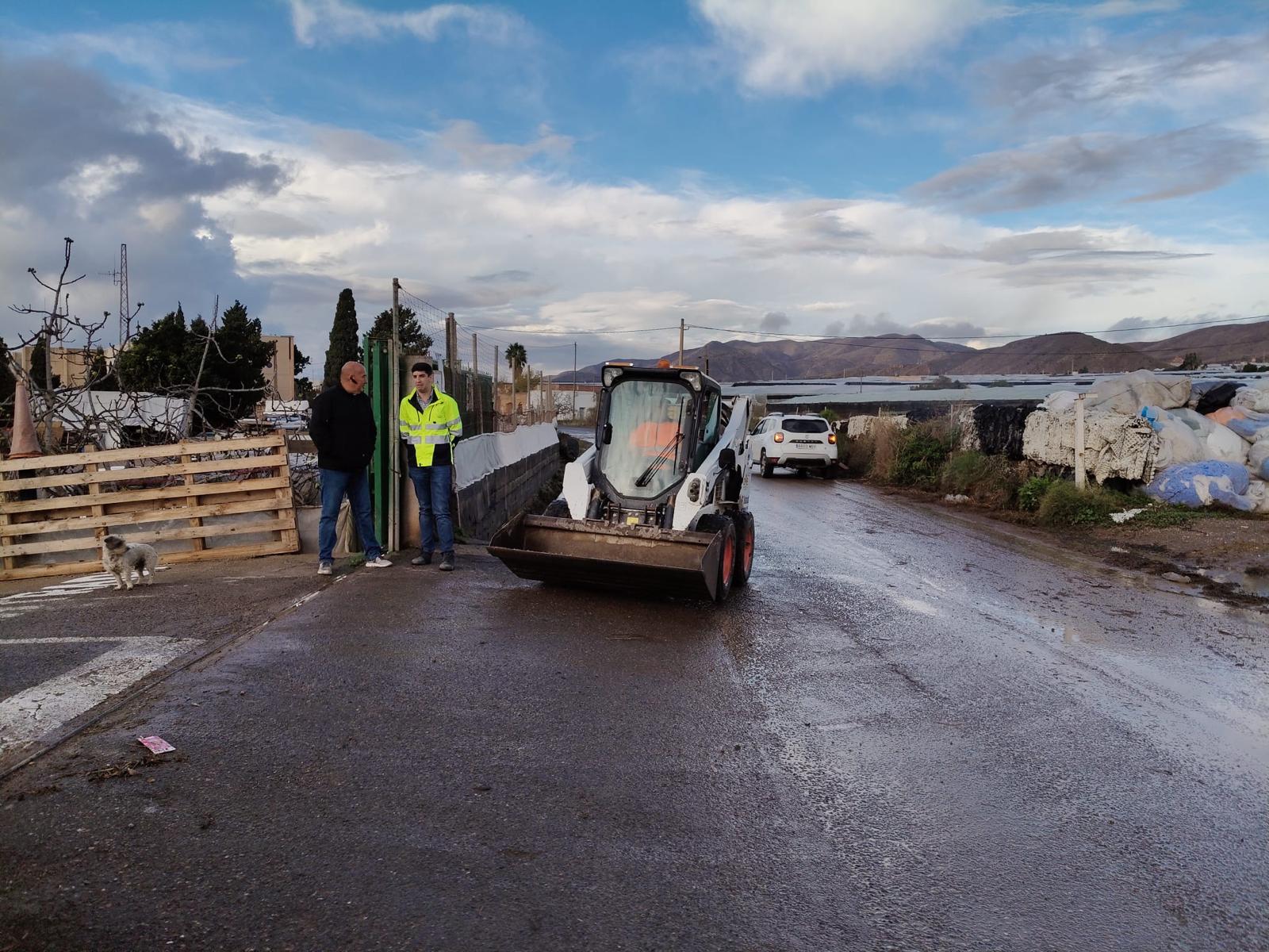 El concejal de Agricultura, Manuel Martínez, junto a técnicos municipales, ha comprobado sobre el terreno los daños ocasionados y ha supervisado los trabajos que se están llevando a cabo desde primera hora de la jornada para restablecer la normalidad lo antes posible.