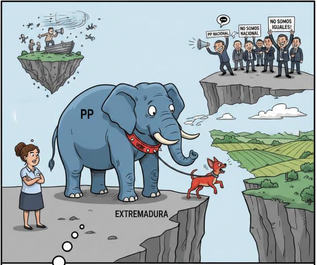Guardiola, que ya sabe lo que es que te falten al respeto desde el socio de al lado —recordemos los insultos que tuvo que digerir en la anterior legislatura—, parece ser la única con memoria en esa Comunidad Autónoma. Sabe que el PP no puede ser un "Vox de marca blanca". Es ella quien ha dicho que el PP no se puede travestir de Vox, que es lo mismo que dice Feijóo, pero luego... en realidad ella es la única coherente. Si el PP tiene 29 diputados es porque los extremeños quieren políticas del PP, no un karaoke de los postulados de Abascal.