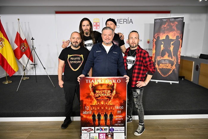El Teatro Apolo vivirá este domingo, 12 de abril, a partir de las 18.00 horas, una genuina tarde con el mejor hard rock de la mano de la banda almeriense Mister Sinmarc. El grupo presentará su primer larga duración titulado ‘Días contados’, en el marco de la programación de primavera puesta en marcha por el Área de Cultura, Educación y Tradiciones del Ayuntamiento de Almería, en la línea de constante apoyo a las bandas y creadores almerienses.