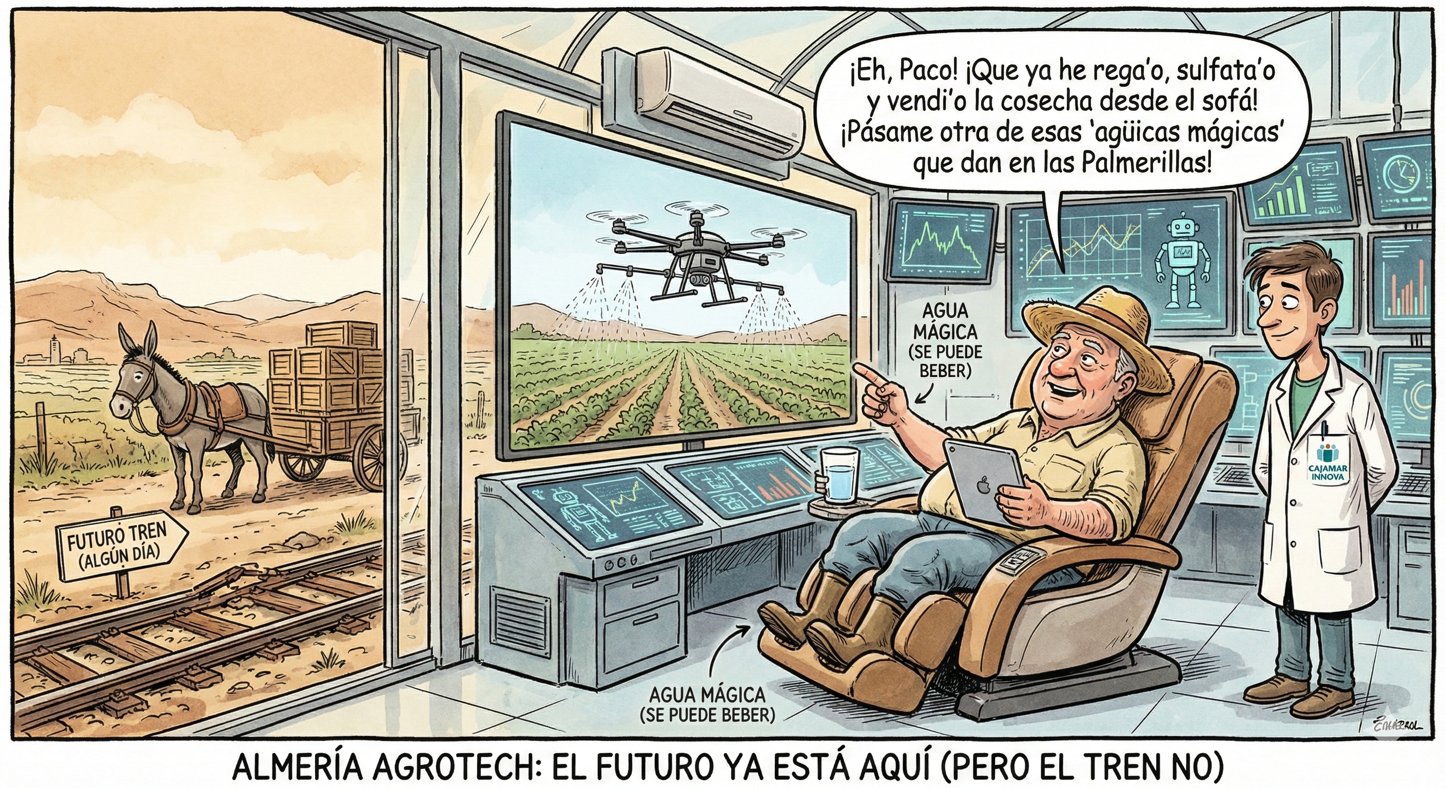 Y, sin embargo, a pesar de los políticos y su asombrosa capacidad para estorbar, el campo almeriense sigue empeñado en dejarnos con la boca abierta. Lo comprobé hace poco paseando por lo que se cuece, o mejor dicho, se incuba, en Cajamar Innova. Si hace décadas el futuro era el invernadero tipo parral, hoy el futuro son algoritmos, sensores y biotecnología.