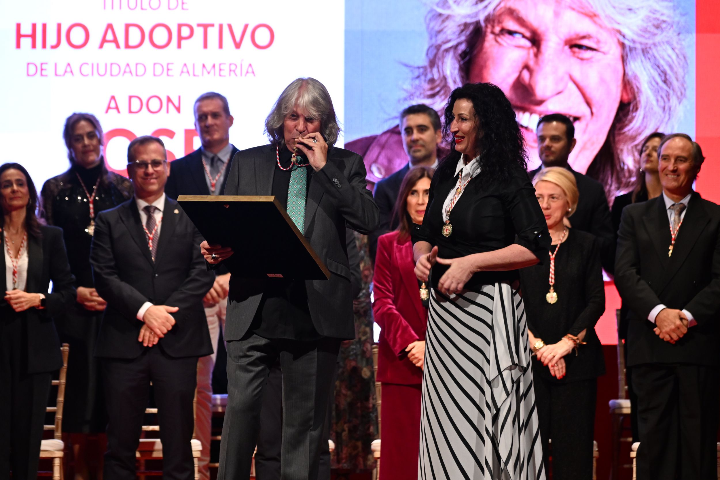 La alcaldesa, María del Mar Vázquez, que ha hilvanado su intervención entre varios títulos de canciones, discos y versos que ha cantado Mercé a lo largo de su carrera, ha asegurado que “hemos querido que José sea tenido, considerado y nombrado como Hijo Adoptivo de Almería por deseo unánime de toda la Corporación Municipal, por su generosa vinculación afectiva, profesional y emocional con Almería, por la difusión de todo lo relacionado con nuestra tierra y por la pasión con la que habla, vive y canta por ella durante más de cuarenta años”.