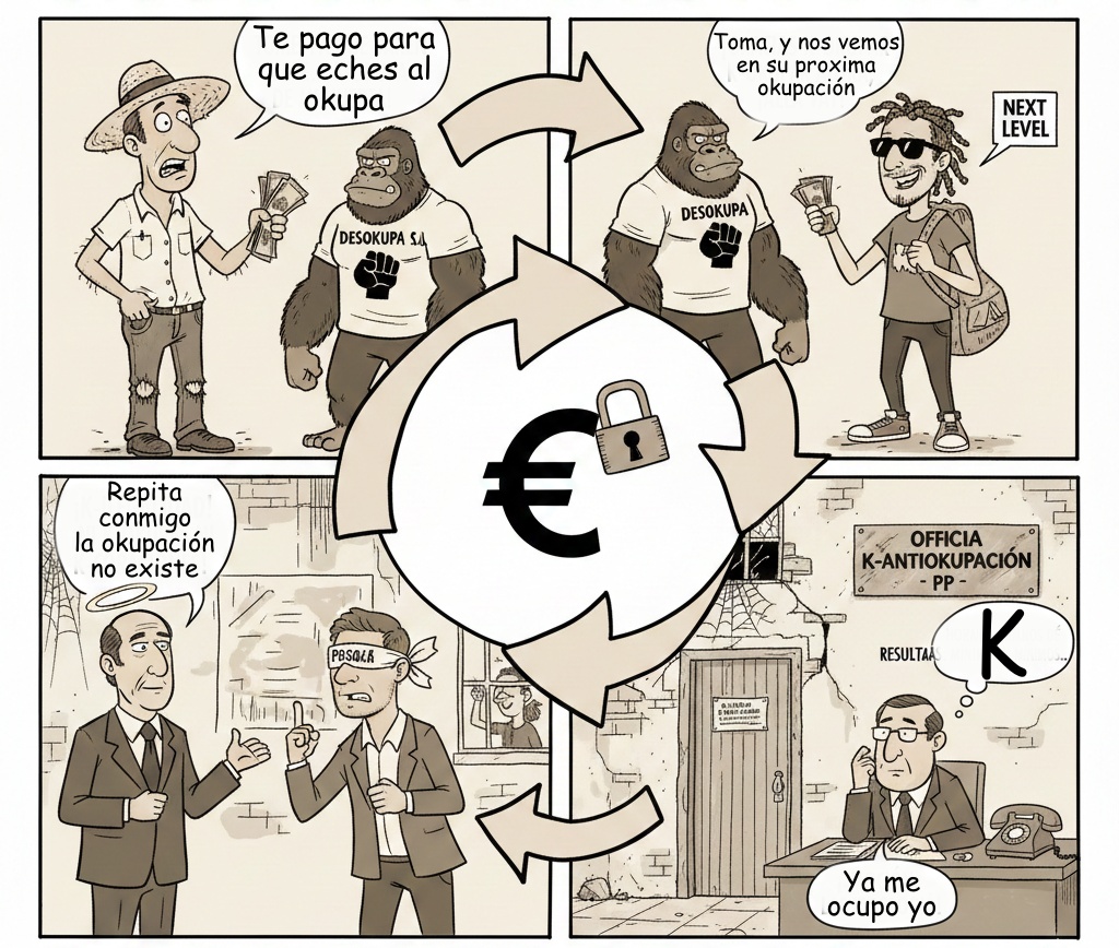 Por otro lado, el negocio de la desocupación ha generado una suerte de economía circular perversa: el propietario paga a la empresa "mediadora", la empresa paga al okupa una "compensación" para que se marche, y éste, que no se volatiliza, busca la siguiente puerta donde meter la patada. El negocio es redondo para casi todos: la empresa factura, el okupa se capitaliza y el único que pierde es el ciudadano que, desprotegido por un Estado ausente, acaba financiando este carrusel de la ilegalidad.