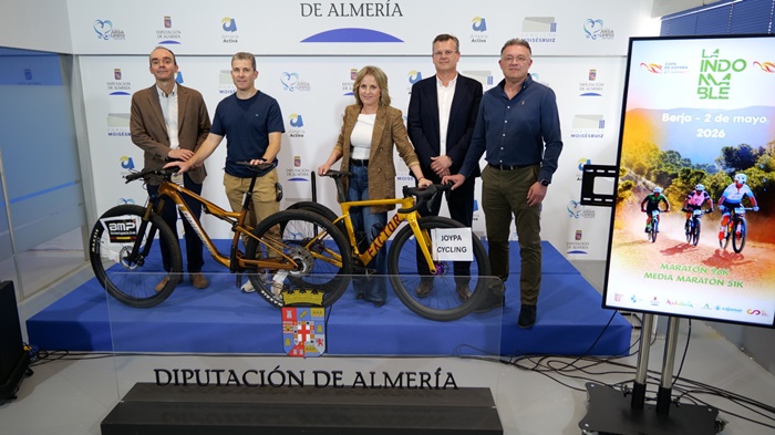 El Pabellón Moisés Ruiz, de la Diputación de Almería, ha acogido este martes la presentación de la XII Marcha Cicloturista de ‘La Indomable’ 2026, que se celebra este sábado 2 de mayo en el municipio de Berja. Se incluye dentro de la Copa de España de Gravel.
