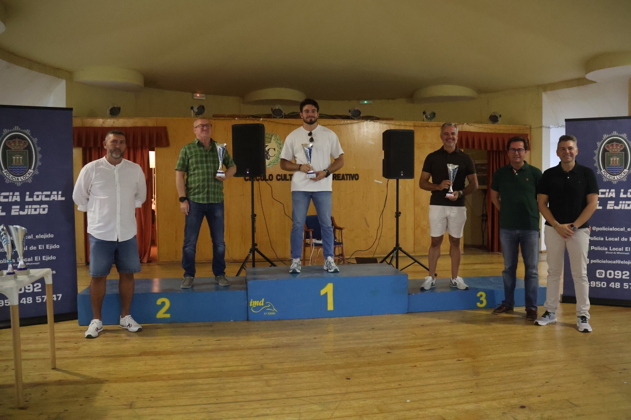 Hoy se ha procedido a la entrega de los correspondientes trofeos de manos del alcalde de El Ejido, Francisco Góngora, y del intendente jefe de la Policía Local, Marco Muñoz, en el Círculo Cultural y Recreativo. Posteriormente se ha celebrado una convivencia entre todos los participantes.