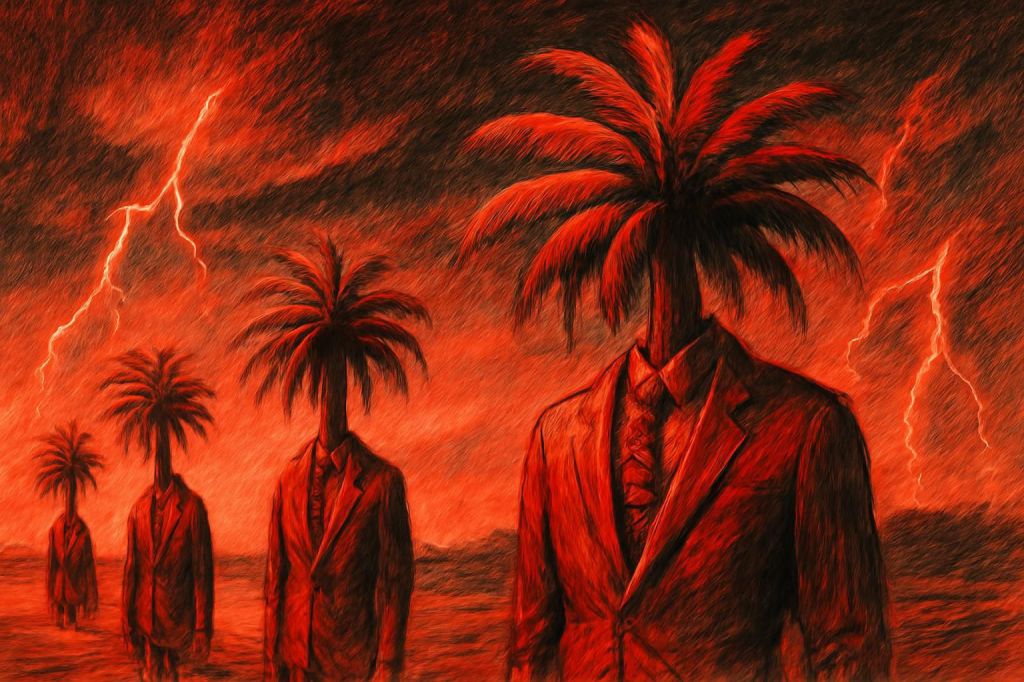 Una mañana se encuentran que los vientos se han levantado, que se han convertido en huracán que amenaza con arrasar su vida, su hacienda y su prestigio. Se encuentra a alguien que sirva de coraza, que aleje el peligro de su entorno, que no le ha llegado todavía el final a las palmeras. Y pasan algunos años, y la vida parece volver a ser plácida, tranquila. La confianza renace, la sonrisa volvió a lucir en sus caras y con ella los dioses volvían a ser felices. Volvían a sentirse seguros, pero los vientos estaban ahí, socavando la vida de las palmeras, buscando su caída. Era martes, los vientos vinieron de otras provincias, vestían de verde, y con el permiso de la justicia, acababan con los altos dioses, y veíamos en esa mañana de otoñal tiempo cómo caían algunas de esas altas palmeras que solo decían buscar el bienestar de nuestro pueblo. Y muchos así lo creían, pero algunas palmeras tienen una efímera vida.
