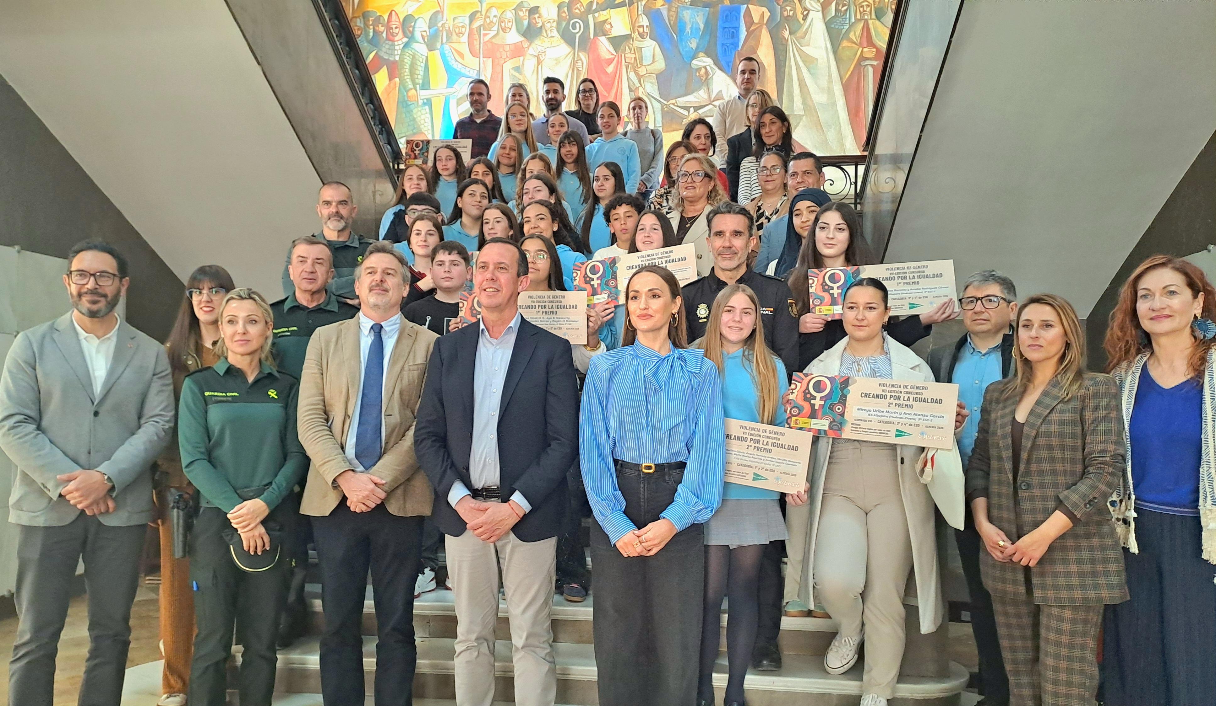 Se han presentado 491 trabajos de alumnos de los institutos de Educación Secundaria Obligatoria de la provincia de Almería. En la entrega de reconocimientos han participado el subdelegado del Gobierno, José María Martín, la jefa de la Unidad contra la Violencia sobre la Mujer, Loly Cruz, representantes de la Delegación Territorial de Desarrollo Educativo, representantes de las Fuerzas y Cuerpos de Seguridad, de las empresas colaboradoras y los centros participantes.