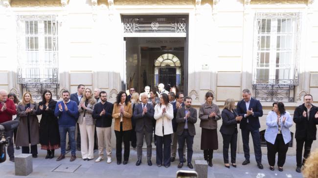 La Diputación, el Ayuntamiento de Almería y la Junta de Andalucía se han unido en un emotivo y solemne minuto de silencio que se ha guardado en la puerta de la institución provincial esta mañana, en la calle Navarro Rodrigo, en homenaje y recuerdo de todas las víctimas de terrorismo.