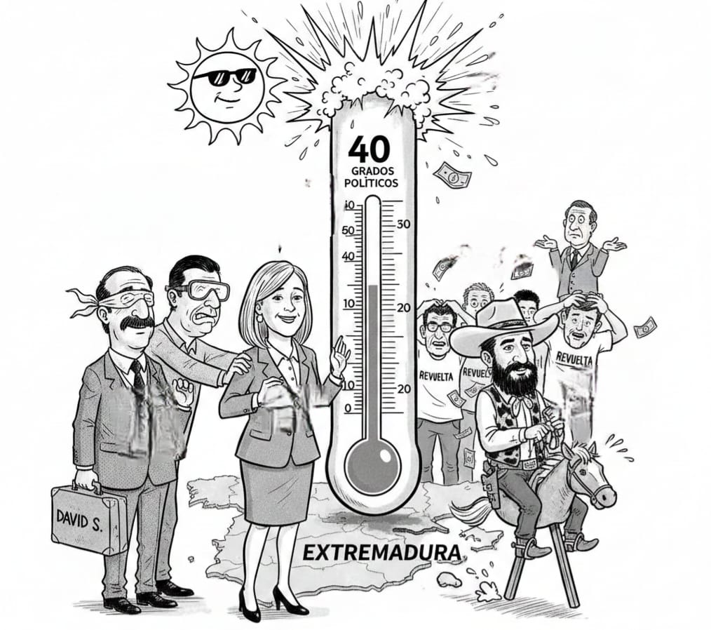 Y luego está Vox. Su candidato, Óscar Arturo Fernández Calle, navega en una subida en las encuestas que nadie sabe si es espuma de mar o marea real. Lo curioso es que el voto a Vox en Extremadura no parece ser un voto de "propuesta" —sus planteamientos son tan desconocidos allí como un día sin viento en el Cabo de Gata—, sino un puro voto de castigo contra Sánchez. Santiago Abascal se ha volcado en la campaña, a diferencia de un Alberto Núñez Feijóo que ha preferido mantener una distancia prudencial, quizás para no quemarse si la foto final no es la esperada. Todo esto, por cierto, aderezado con el escándalo de Revuelta, esas juventudes "no orgánicas" que han terminado en guerra abierta con la dirección del partido por el supuesto desvío de fondos de la DANA. Un sainete en toda regla.
