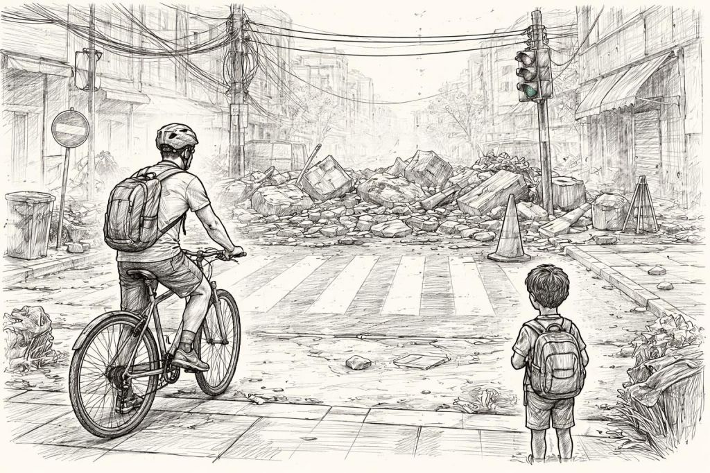 Otro de los graves peligros -en esto el ayuntamiento ayuda- consiste en hacer coincidir el carril bici con los pasos de cebra ¡sin semáforo! Esto es una barbaridad. Y es el propio ayuntamiento el que hace “docencia” de este dislate. Así, los usuarios del patinete y la bici cruzan los pasos de peatones a bordo de su vehículo porque tienen interiorizado que es así, ya que es el propio ayuntamiento quien diseña esa aberración. No todo es un caos por las obras ni por el prohibicionismo. El caos no sobreviene porque sí. Hay quien apuesta y se esfuerza por sublimar el caos.