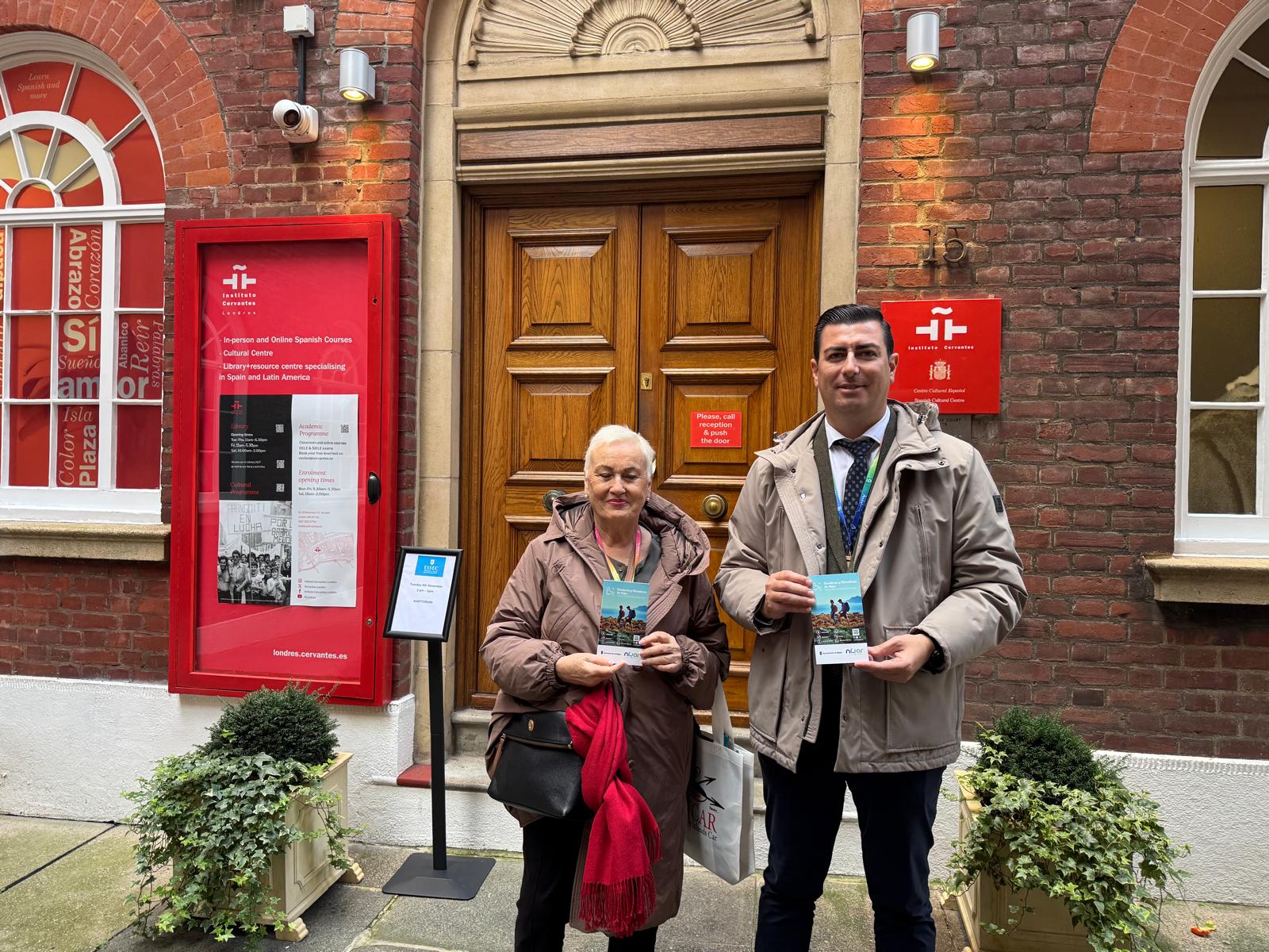 Que Níjar levanta pasiones como destino turístico diferenciado y de calidad no es nada nuevo. Lo que sí es novedoso es la última acción de promoción turística llevada a cabo por el Ayuntamiento nijareño, que estos días está presente, por segundo año consecutivo, en ‘World Travel Market’ (WTM), la prestigiosa feria internacional de turismo que se está desarrollando en Londres. Así, el alcalde, José Francisco Garrido, y la concejal de Turismo, Pilar Fenoy, han aprovechado su presencia en la capital inglesa para visitar la sede del Instituto Cervantes, la más importante referencia española para los amantes de la cultura, la lengua y la historia de España.