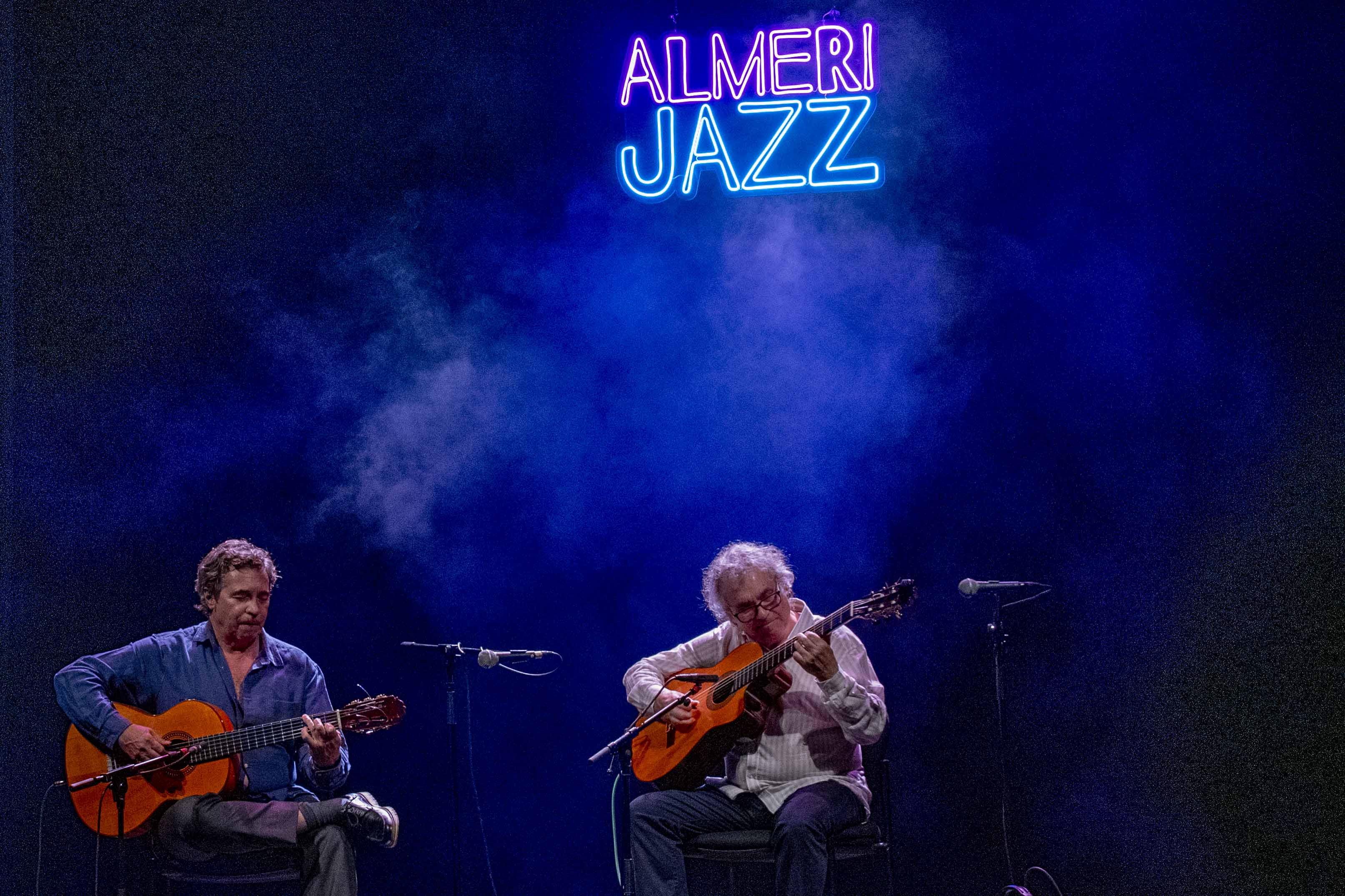 “Para nosotros siempre es un placer volver a Almería, pero si además lo hacemos en un concierto en el que recordamos a Serafín, es un gustazo”. El Teatro Apolo vivió anoche el que pasará por ser el concierto más emotivo del 33º Festival Internacional Almerijazz y que unió de nuevo a los guitarristas Nono García y Tito Alcedo sobre un escenario, como también hacían hace varias décadas en el del Georgia Jazz Club de Serafín Cid. Por ello, el Área de Cultura del Ayuntamiento de Almería y el festival, con el concejal Diego Cruz como maestro de ceremonias, hicieron entrega anoche del galardón que lleva su nombre a los dos guitarristas de Barbate.