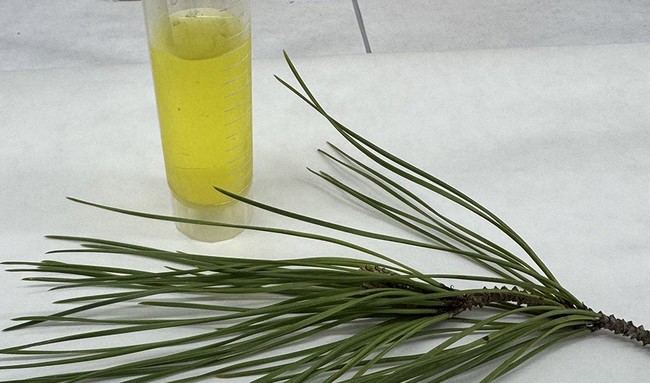 Los investigadores han implementado principios de economía circular durante el desarrollo del sensor. Han utilizado acículas de pino —conocidas comúnmente como pinochas— para obtener un extracto acuoso que permite sintetizar las nanopartículas metálicas necesarias para la detección. Este proceso implica lavar, triturar y tratar las pinochas con ultrasonidos para extraer sus compuestos, transformando así una sal de oro soluble en oro metálico nanométrico altamente reactivo.