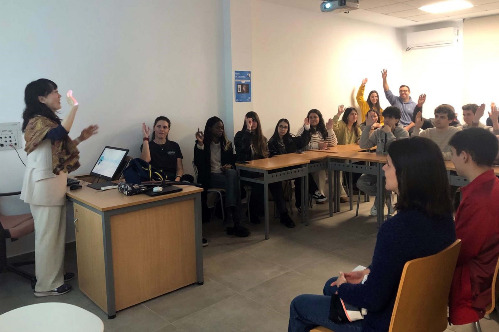 El interés por Japón es recíproco. La profesora acompañante de la Universidad de Saga llevó a cabo una sesión informativa titulada ‘Cómo estudiar en Japón’, dirigida a alumnos interesados en realizar estancias académicas en este país. La convocatoria resultó ser un éxito rotundo, completando el aforo con la asistencia de entre 35 y 40 estudiantes, lo que evidencia el creciente deseo por parte del alumnado almeriense de movilizarse hacia el continente asiático.