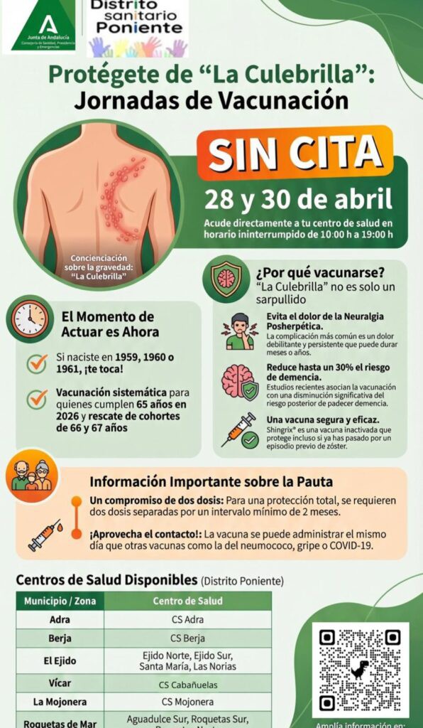Para más detalles sobre esta campaña, los interesados pueden dirigirse al centro de salud correspondiente o consultar los canales oficiales del Distrito Sanitario Poniente y la Consejería de Salud.