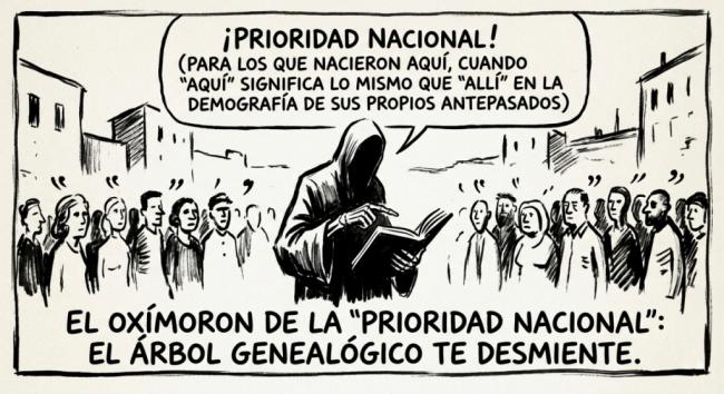Ahora que nos acercamos a las elecciones al Parlamento de Andalucía del próximo 17 de mayo, el argumentario de Vox ha decidido sacar a pasear la "prioridad nacional". Una de esas "frasecitas" que, al igual que el pin parental o la cruzada contra la "religión climática" o la "amenaza del lobby gay", buscan la eficacia del eslogan vacío frente a la complejidad de la realidad.