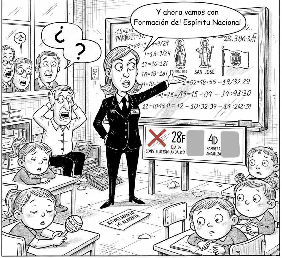 Hay mociones y después están las mociones con pedigrí, las que llegan al Pleno del Ayuntamiento de Almería no solo a morir sino a evidenciar una estrategia digna de estudio en cualquier manual de cómo confundir la velocidad con el tocino —o en este caso, la Educación Infantil con el catecismo nacional-católico—. Me refiero, claro está, a la propuesta de VOX para que las Escuelas Infantiles municipales se conviertan en pequeñas academias de exaltación de ciertas fechas conmemorativas. Y no unas cualquiera.