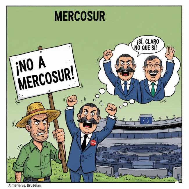 El Gobierno de España, bajo el mando del PSOE, ha optado por la técnica del avestruz. Se mantienen de perfil, votan a favor en Europa y callan en casa, esperando que el chaparrón pase sin que nadie les pregunte por qué consideran "estratégico" un acuerdo que amenaza con convertir la soberanía alimentaria en un recuerdo romántico. Mientras tanto, la extrema derecha y la extrema izquierda coinciden —caprichos de la herradura política— en un rechazo frontal, por razones iguales y diferentes. Entre ambas posturas, las de los sies y las de los noes, hay una distancia marcada por el hecho de unos tienen responsabilidades de gobierno o aspiran a tenerlas, y los otros no las tienen y pueden prometer lo que les de la gana.